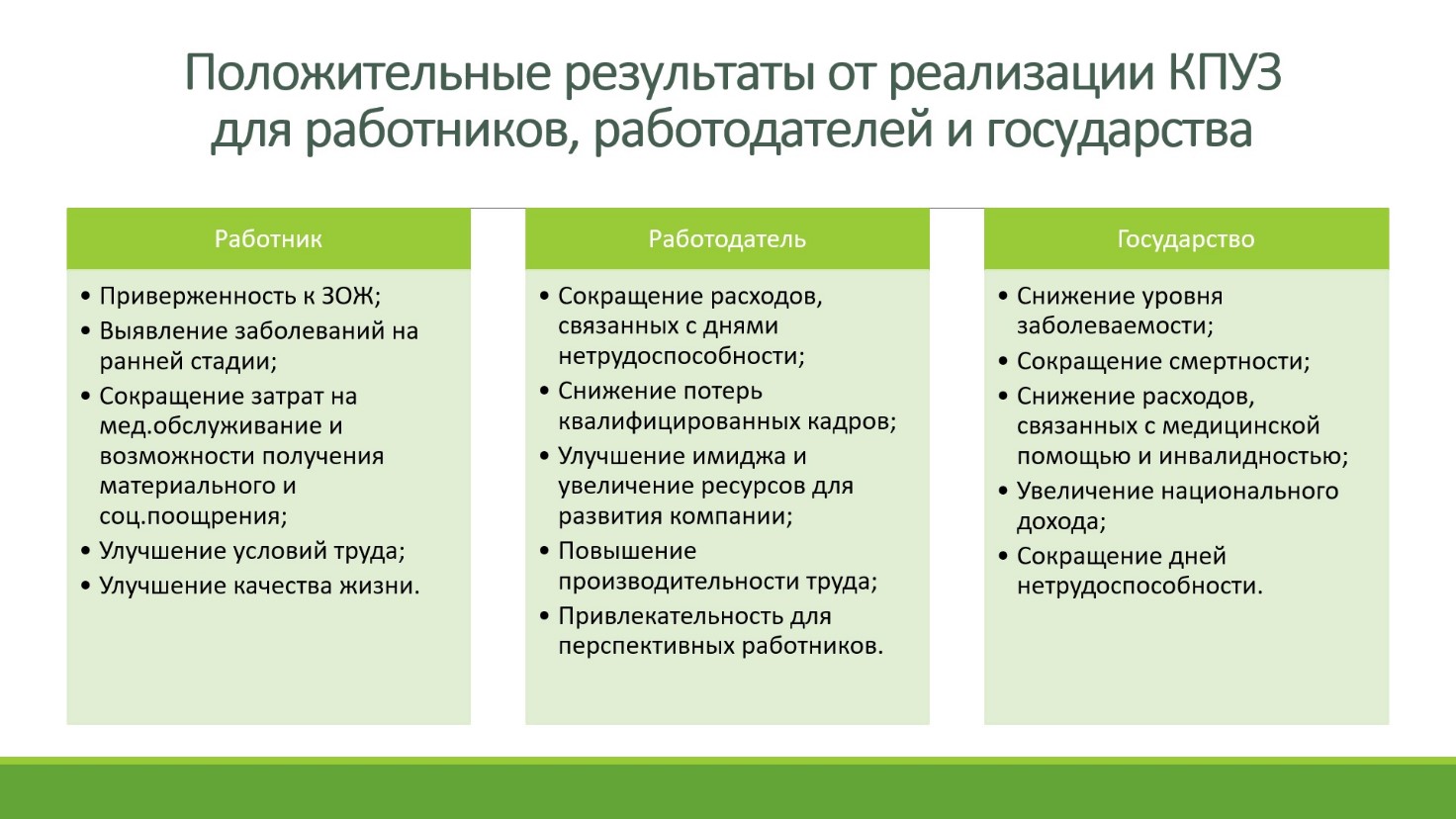 Корпоративные программы укрепления здоровья (КПУЗ) – инвестиционный проект, участниками которого выступают государство, работодатель и работник.